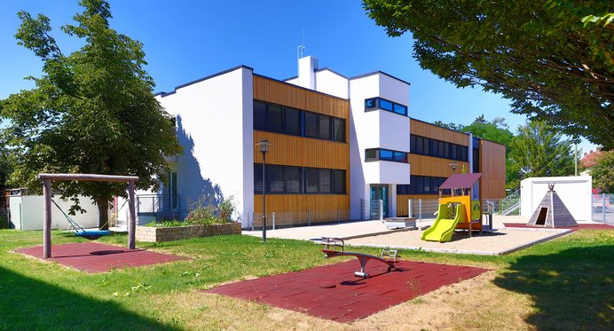 Illertissen hat die Kindergrippe Glühwürmchen energetisch saniert und ausgebaut. Unter anderem wurde die bestehende Beleuchtungsanlage auf energiesparende LED-Technik umgerüstet und veraltete Pumpen gegen hocheffiziente Pumpen ausgetauscht. Durch diese Maßnahme kann der Energieverbrauch des Gebäudes deutlich reduziert werden. Dafür erhält die Kommune im Rahmen der LEW Klimaschutzprämie eine Förderung in Höhe von 2.500 Euro.