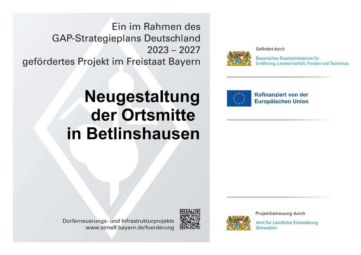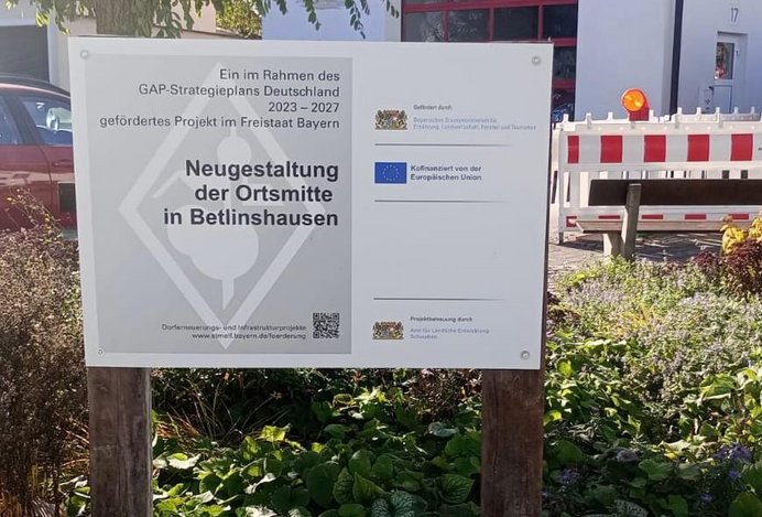 Die Stadt Illertissen erhält 885.000 Euro Förderung aus dem Europäischen Landwirtschaftsfonds für die Entwicklung des ländlichen Raums (ELER) für die Umgestaltung der Dorfmitte Betlinshausen. Dank der Förderung ist das Projekt, das auf Gesamtkosten von ca. 1,5 Millionen Euro geschätzt wird, umsetzbar. Die Bauarbeiten sollen noch 2025 beginnen.